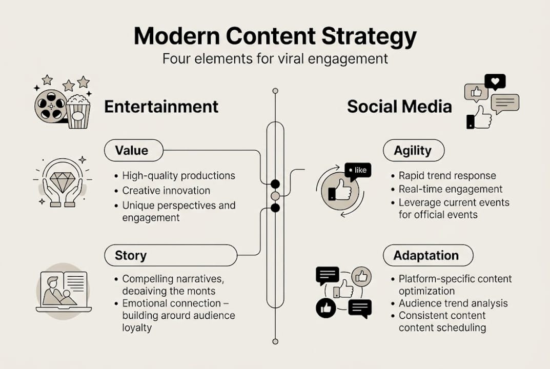 - Audiences now prioritize entertainment over educational content, boosting engagement and virality.